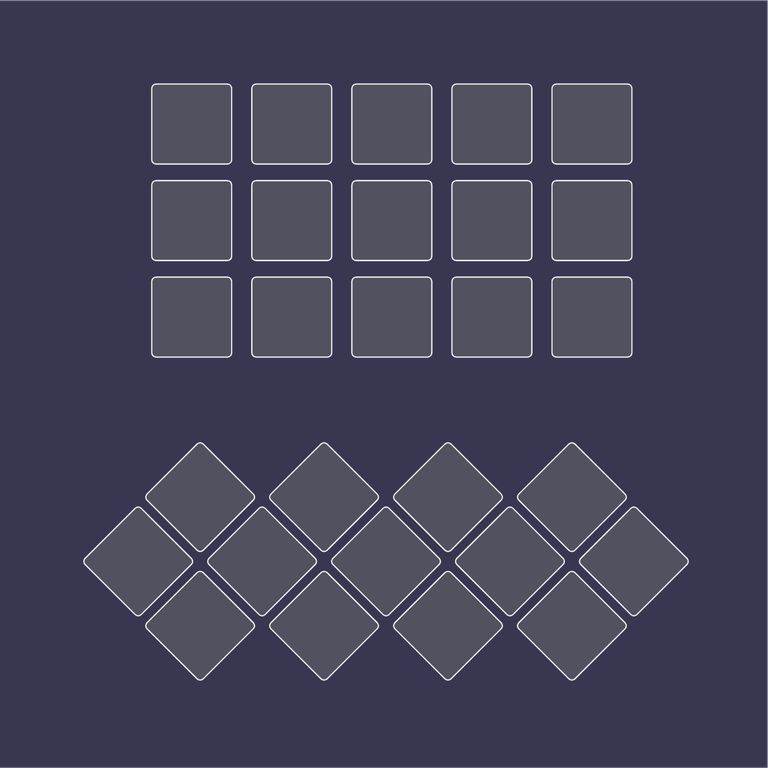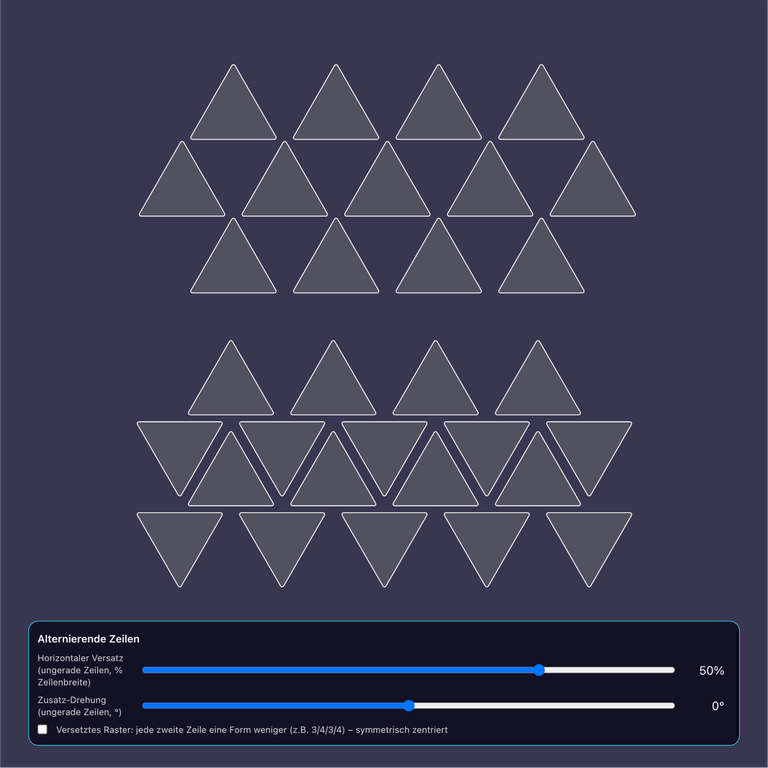 Oben ein einfaches Dreiecks-Grid, darunter versetzte und optional gedrehte Zeilen.