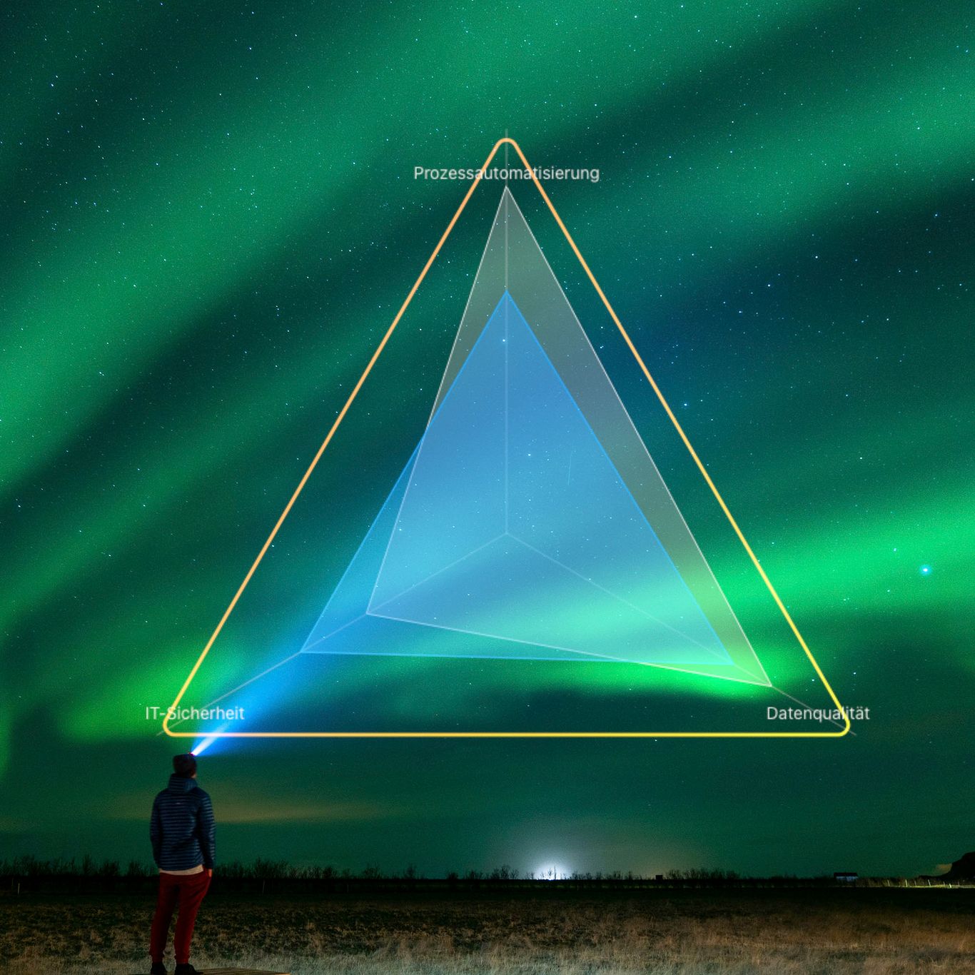 Aus dem Dreieck wird ein Diamant – perfekt, wenn vier zentrale Dimensionen im Fokus stehen: zum Beispiel Technik, Organisation, Prozesse, Kultur.